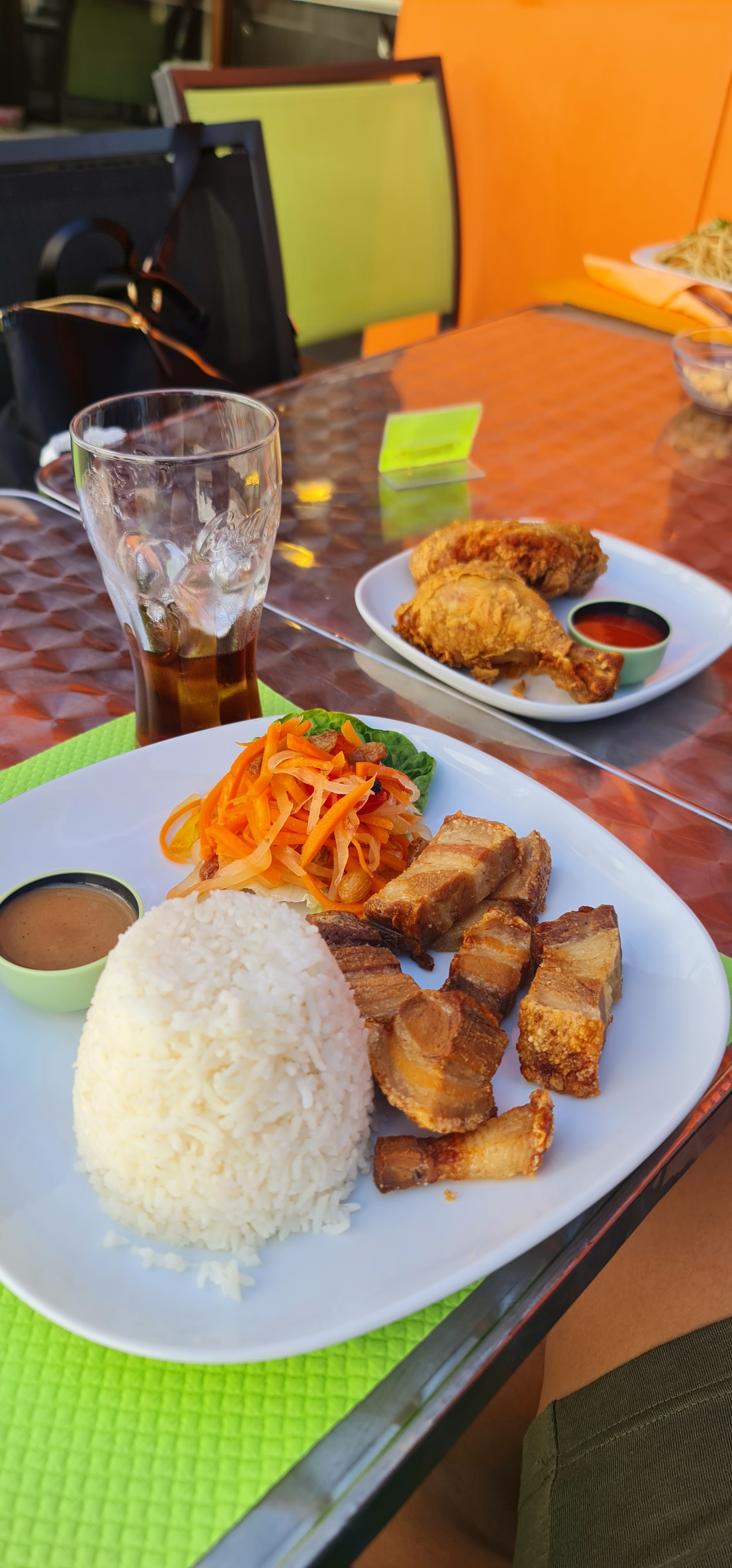 Nous avons été surpris que ce restaurant local ait réussi le test de goût. Nous avons eu le combo de poulet frit et avons commandé du lechon kawali sans riz. Le restaurant a réduit le prix du repas lechon kawali de 2 euros pour le riz. Je recommande vivement ce restaurant philippin.